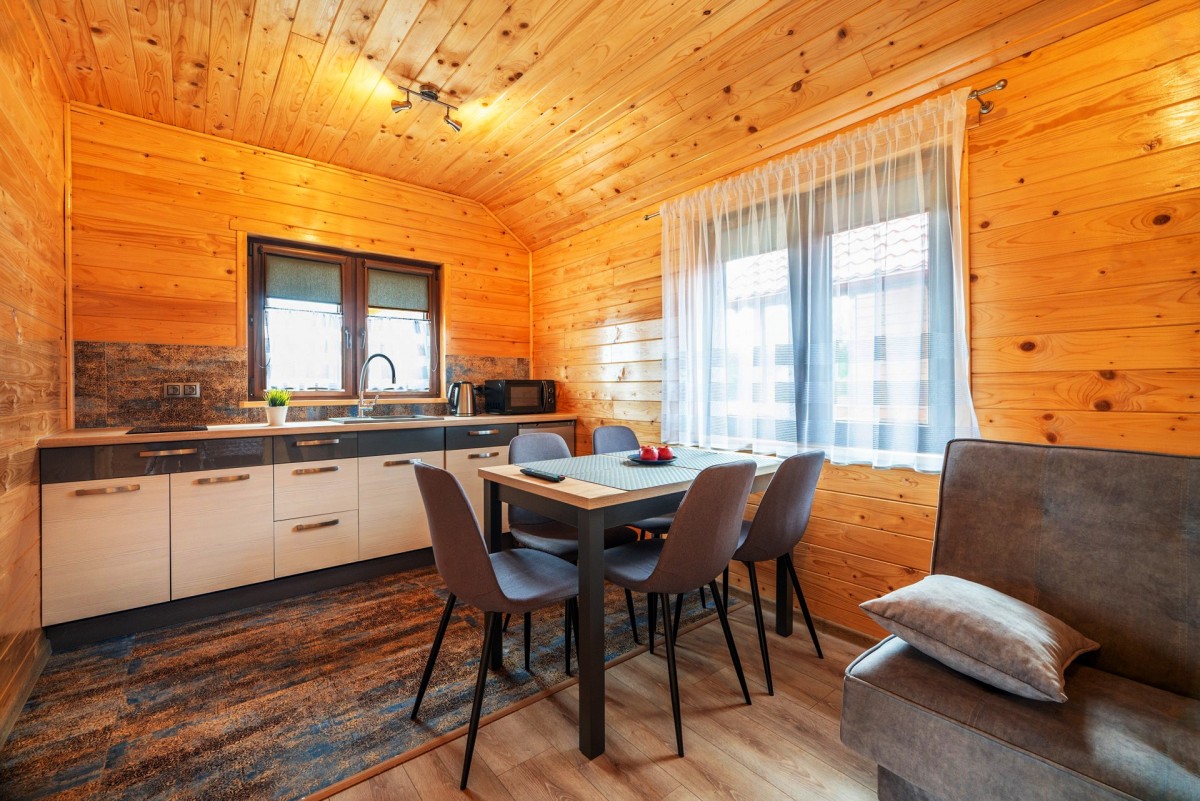 - Komfortowe domki - doskonałe na rodzinny wypoczynek, wakacje z przyjaciółmi, czy nawet romantyczny wypad!