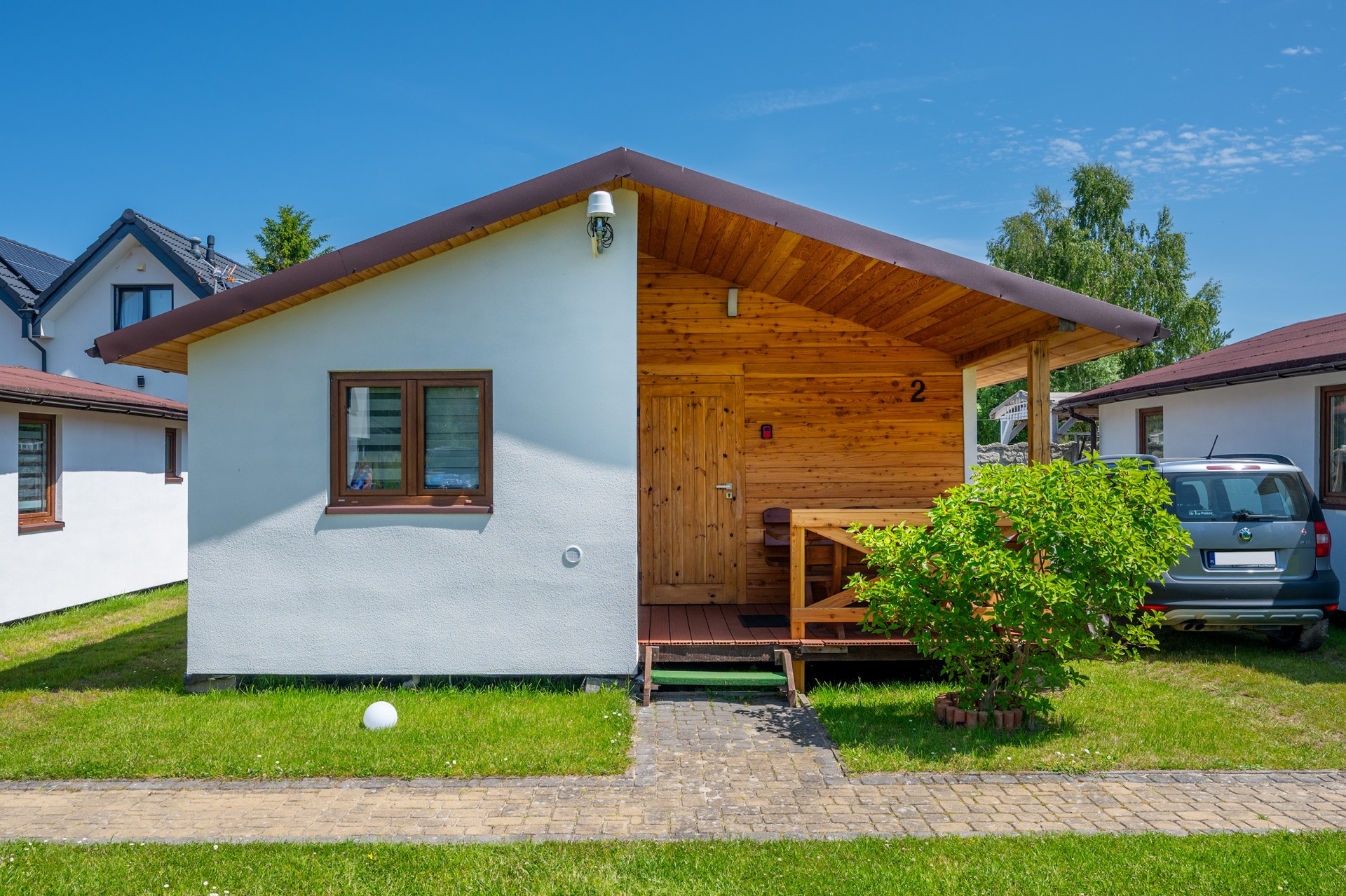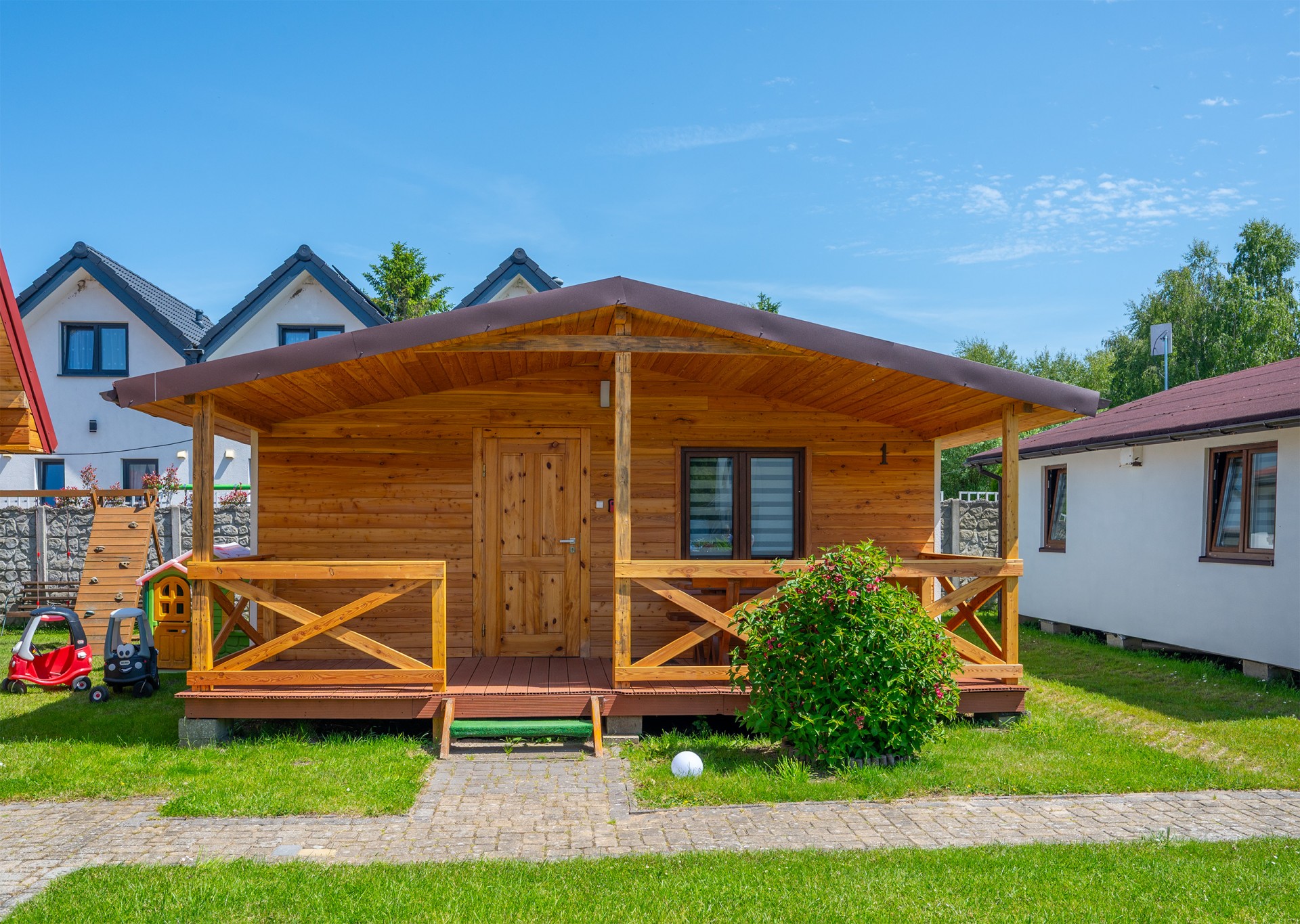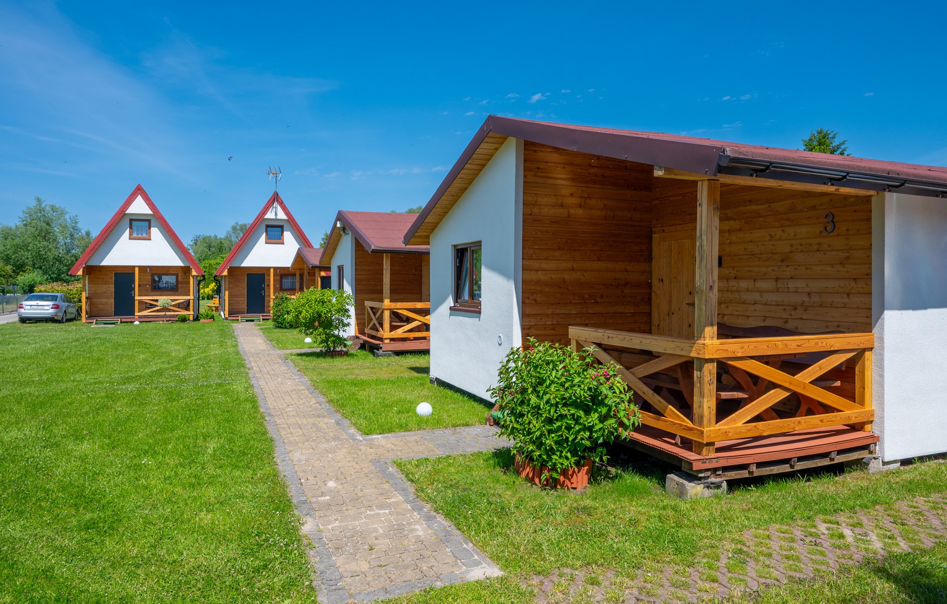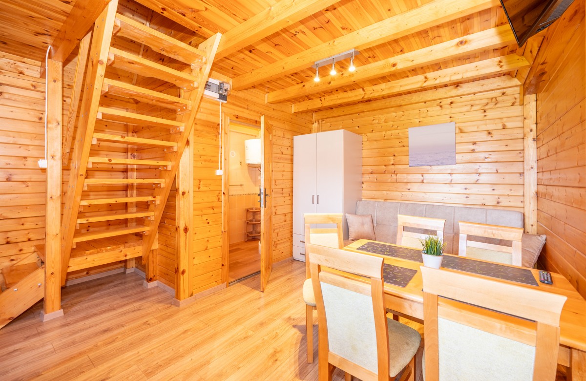 Oferujemy dwa typy parterowych domków, które różnią się aranżacją wnętrza, ale łączy je jedno - przestronność i funkcjonalność. Każdy domek posiada dwie oddzielne sypialnie oraz salon z w pełni wyposażonym aneksem kuchennym.